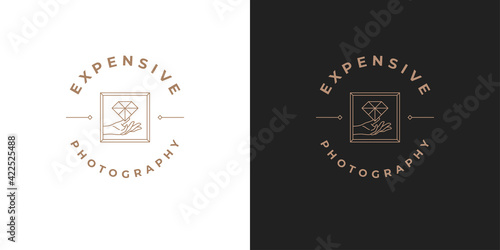 Female hands holding luxury diamond logo template linear vector illustration