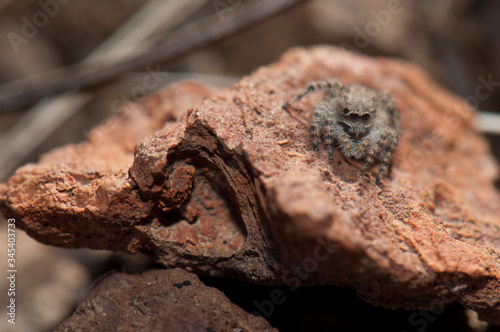 Female jumping spider (Aelurillus lucasi). Las Brujas Mountain. Integral Natural Reserve of Inagua. Tejeda. Gran Canaria. Canary Islands. Spain.