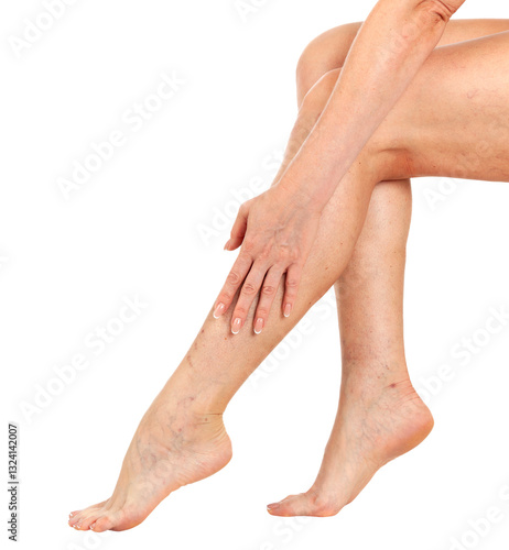 foot, vein, care, skin, woman, isolated, leg, varicose, vascular, bare, barefoot beach, beautiful, beauty, body, chiropody, closeup, foot, female, finger, girl, health, heel, human, lady, leg, mature, nail, naked, old, pedicure, people, person, senior, shoe, spa, star, background, chronic, disease, health care, limb, age, adult, hand, arm, touch, treatment, manicure, healthy