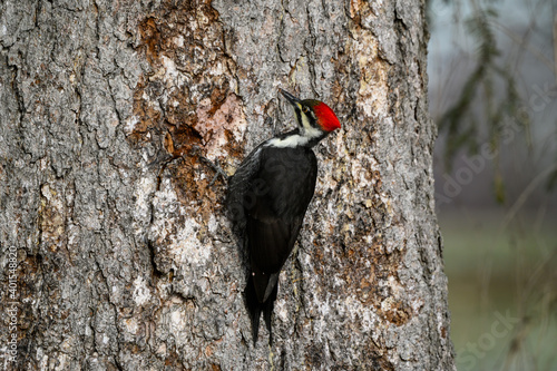 tree, woodpecker, ottawa, feather, lake ontario, bird, red, canada, crest, male, vertical, black, plumage, ornithology, forest, beak, wilderness, trunk, nature, large, oak, animal, bill, wildlife