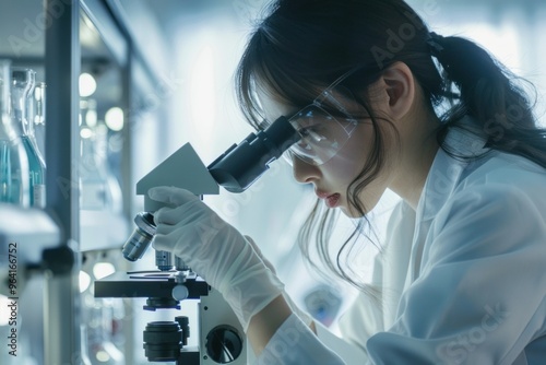 female, researcher, microscope, scientific, investigation, laboratory, scientist, young, woman, research, technology, modern, laboratory, professional, microscopy, studying, sample, science, equipment, concentrated, analysis, experimentation, technician, medicals, biotechnology, adult, coat, biology, chemistry, pharmaceutical, discovery, education, health care, focused, work, precision, study, innovation, safety