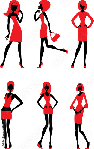 silhouette, woman, abstract, background, beautiful, beauty, bending, black, body, clothing, collection, contour, design, dress, element, fashion, female, girl, group, hair, heel, high, human, illustration, imagery, isolated, leg, outline, painting, people, red, shadow, shape, shoe, skirt, standing, stretching, style, vector, white