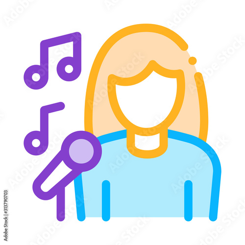 Female Singer With Microphone Sing Recital Vector Icon Thin Line. Microphone And Dynamic, Concert And Theater, Opera And Karaoke Concept Linear Pictogram. Illustration