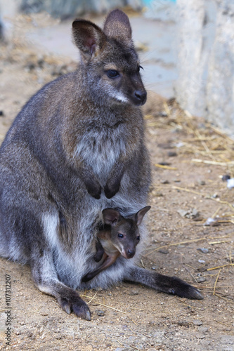 female with young in a pouch, Bennett's wallaby, Macropus rufogriseus