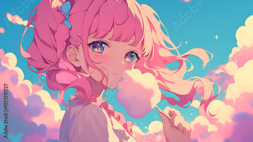 feminine anime girl lots of pink cotton candy
