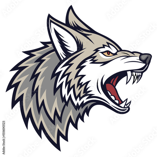 wolf, head, logotype, animal, fierce, howling, wild, predator, canino, teeth, ferocious, snarling, graphic, design, illustration, cartoon, mascot, sport, team, grey, silver, black, white, red, mouth, fang, eye, nature, wildlife, symbol, power, strength, courage, aggressive, attack, hunter, roaring, pack, loyal, symbolism, vector, art, character, drawing, image, silhouette, profile, scarey, dangerous