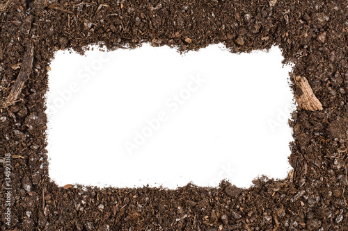 dirtied, fertile, dirt, topview, texture, frame, background, border, garden, textured, up high, agriculture, brown, closeup, concept, cultivated, dried, dry, fertilizer, gardening, humus, macro, natural, nature, nobody, organic, pattern, pile, planting, rural, surface, terrain, theme, turf, view, isolated, white