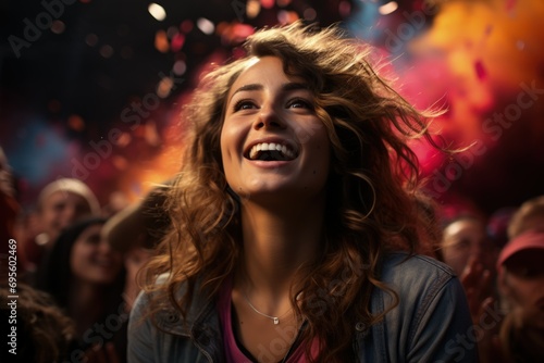 festival, joy, woman, smile, celebration, happiness, euphoria, crowd, party, vibrant, laughter, cheerful, ecstatic, event, energy, music, fun, exuberant, lively, entertainment, concert, enjoyment, festive, glowing, jubilant, expressive, carefree, bliss, excited, youth, revelry, atmosphere, social, radiant, nightlife, jubilation, communal, energetic, delight