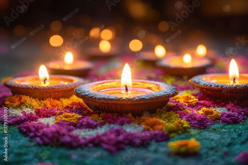 Festival of Lights - Celebrating Diwali with Traditional Indian Oil Lamps and Colorful Decorations