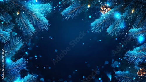 blue, pine, branch, light, pine cone, christmas, winter, festive, holiday, background, sparkle, glow, bokeh, dark, night, magical, mystical, dreamy, serene, tranquil, peaceful, elegant, sophisticated, luxurious, celebratory, joyful, happy, merry, bright, shiny, glistering, shimmer, abstract, texture, design, decoration, season, celebration, image, photo, graphic