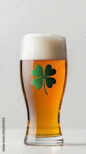 Festive Celebration Glass of Beer with Shamrock Decoration for Saint Patricks Day Holiday Party or Event