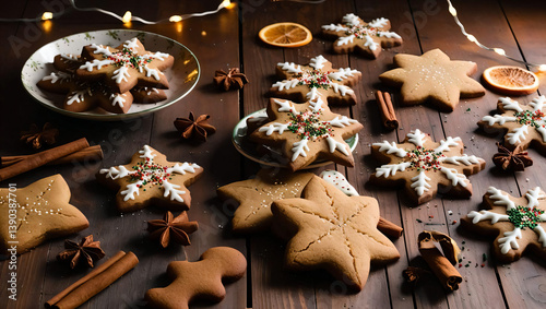 Festive Christmas Cookies on Wooden Table