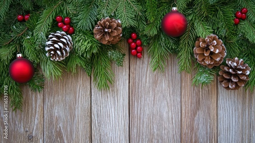 christmas, garland, ornament, pine, cone, berry, wood, rustic, red, green, holiday, festive, winter, decoration, background, border, frame, design, christmas, celebration, season, tree, branch, nature, texture, image, photo, graphic, element, template, illustration, pattern, style, merry, joyful, happy, spirit, traditional, classic, elegant, simple
