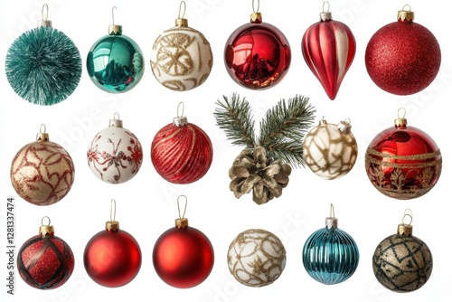 christmas, ornament, decoration, bauble, red, green, gold, white, silver, glistering, glasses, shiny, festive, holiday, winter, celebration, christmas, tree, decor, design, sparkle, elegant, traditional, classic, textured, hanging, round, ball-shaped, teal, bronze, pine, cone, arrangement, collection, display, beautiful, season, joy