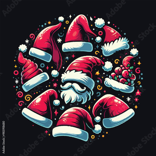 Festive Christmas Santa Tee – Bold Colors, Black Background
