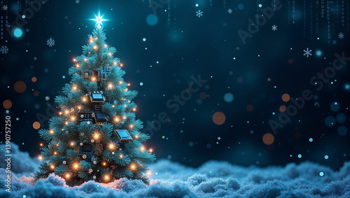 Festive Christmas tree adorned with lights in a cozy winter setting perfect for holiday celebrations