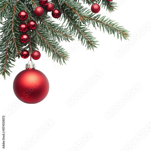 Festive Christmas Tree Branches with Red Ornaments and Baubles