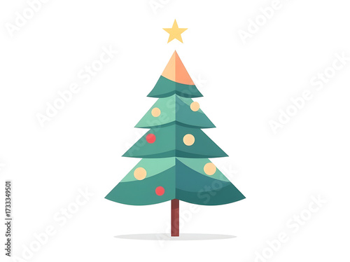 Festive Christmas Tree Illustration with Star and Ornaments for Holiday Design