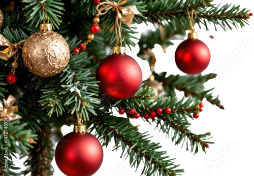 Festive christmas tree with ornaments holiday decor close-up cheerful concept