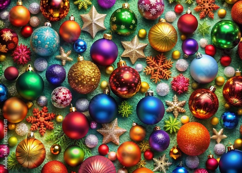 Festive Christmas Wallpaper Design Featuring Colorful Ornaments, Snowflakes, and Holiday Cheer Background