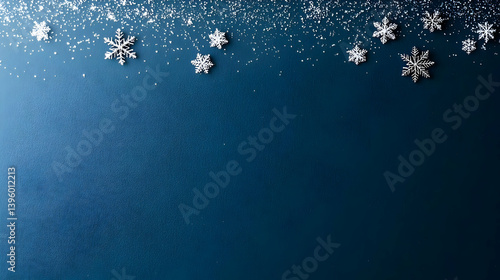 snowflake, glistering, winter, christmas, festive, holiday, blue, dark blue, silver, white, decoration, background, pattern, texture, graphic, design, celebration, sparkle, shimmer, elegant, artistic, beautiful, glamourous, modern, minimalist, art, image, graphic design, snow, abstract, composition, topview, surface, horizontal, wintery, cold, dot, particle, shiny, celebratory, event