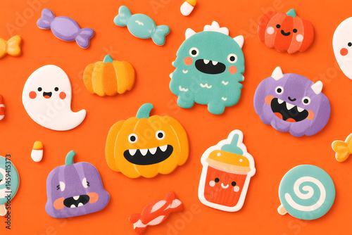 halloween, decoration, treat, candy, ghost, pumpkin, monster, cute, festive, sweet, fun, design, holiday, colourful, playful, cheerful, joyful, whimsical, autumn, october, celebration, party, seasonal, background, adorable, happy, smiling, orange, delightful, illustration, sugar, confection, gift, surprise, joy, happiness, delight, pleasure, cheerfulness, enjoyment, amusement, playfulness