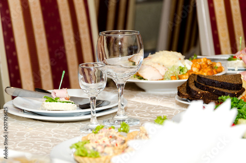 fork, wedding, banquet, meat, fresh, holiday, setting, party, glasses, celebration, decoration, white, lunch, dining, salad, dish, eatery, meal, plate, table, dinner, food