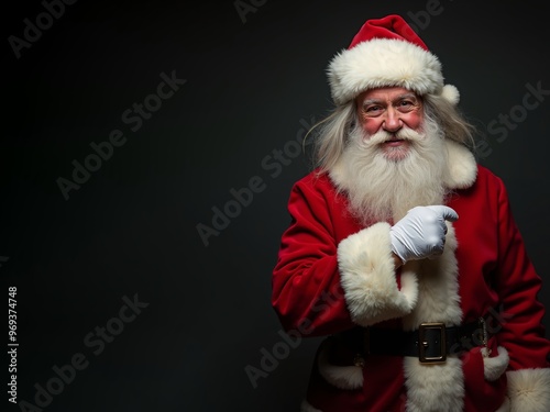joyful, welcoming, holiday season, cosy, isolated, copy space, santa, holiday spirit, festive attire, traditional costume, smiling face, warmth, merriment, heritage