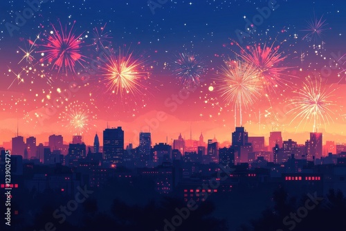 city, skyline, fireworks, night, dusk, building, celebration, display, colourful, spectacular, vibrant, bright, light, illumination, festive, holiday, event, show, amazing, beautiful, stunning, gorgeous, magnificent, breathtaking, impressive, grand, awesome, incredible, extraordinary, remarkable, superb, marvellously, fantastic, excellent, majestic, glorious, urban, city landscape, twilight