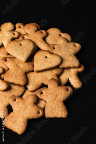 gingerbread, cookie, festive, cinnamon, ginger, clove, holiday, new year, christmas, receipe, dough, baking, homemade, shape, black, background, soft, crisp, spiced, chewy, traditional, treat, spicey, aromatic, sugar, sweet, dessert, man