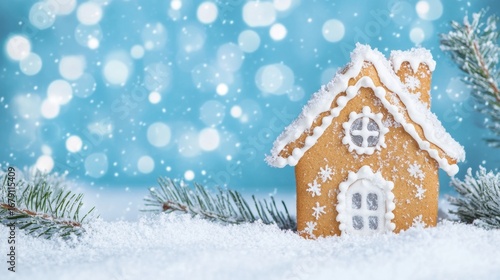 gingerbread, house, snow, icing, holiday, decoration, festive, winter, pine, branch, baking, sweet, christmas, celebration, treat, cosy, sugar, cookie, culinary, dessert, traditional, season, family, fun, time, homemade, kitchen, edible, art, wonderland, delicious, spirit, cheerful, event, craft, seasonal, joyful, white, textured, table, display, tasty, merry, creative, ornamental