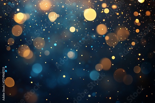 Festive golden and blue bokeh lights, dark background, celebration overlay