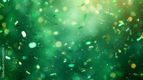 Festive green bokeh confetti floating down on a lively green background, generative ai