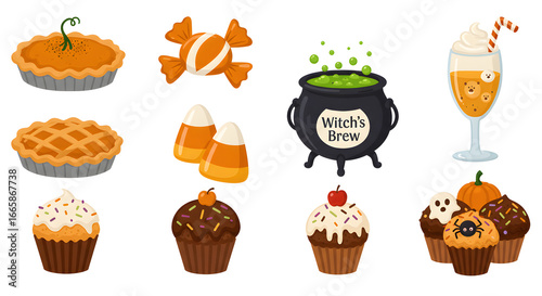 Festive Halloween Treats Pies, Candies, Cupcakes, and Witch's Brew for a Spooky Celebration!