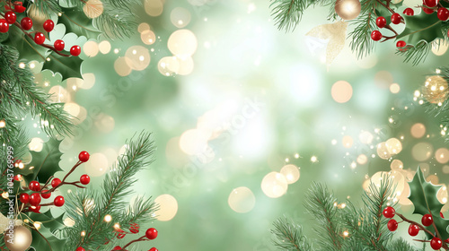 holiday, christmas, celebration, green background, christmas tree, festive, ornament, red berry, holly, copy space, advertising, cheerful, joyful, traditional, decorative, light, ornate, season, decoration, background, texture, winter, holiday spirit, festivity, holiday lights, peaceful, vibrant, colourful, magic, whimsical, beautiful, winter landscape, graphic design