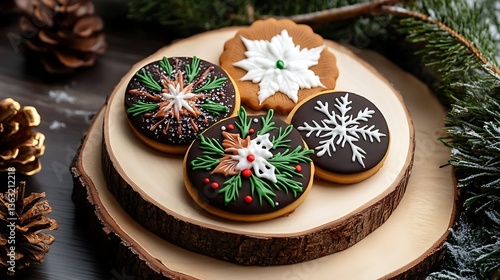 Festive Holiday Cookies on Rustic Wooden Platter AI Generated