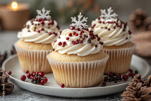 festive, holiday, cupcake, snowflake, christmas, vanilla, frosting, decoration, dessert, celebration, winter, sweet, baking, seasonal, cosy, delicious, red, pearl, sugar, cream, cake, pine cone, candle, warmth, hand-made, traditional, joyful, culinary, decoration, style, epicure, treat, homemade, appetising, inviting, comforting, cheerful, elegant, spirit, indulgence, merry, charme, family