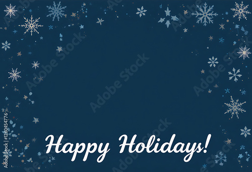 holiday, greeting, card, snowflake, dark blue, background, festive, winter, celebration, cheerful, decorative, design, white, light blue, seasonal, joy, message, elegant, ornate, blank space, wintery, atmosphere, border, symmetric, intricate, pattern, detailed, artistic, beautiful, joyful, wish, typography, script, stylish, classic, traditional, snow, icy, cold, frosty, holiday season, happy holiday, christmas, snowflake, happy