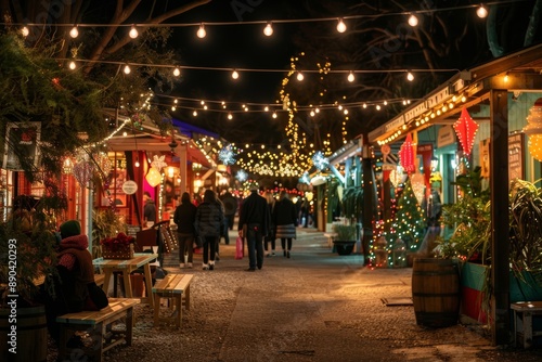 festive, holiday, market, night, colourful, light, decoration, gift, exchange, celebration, night time, scene, vibrant, string, illumination, people, enjoying, atmosphere, stall, tree, ambient, event, seasonal, winter, street, shopping, joyful, decorative, gathering, social, tradition, culture, illuminated, leisure, community, festivity, cheerful, warm, merriment