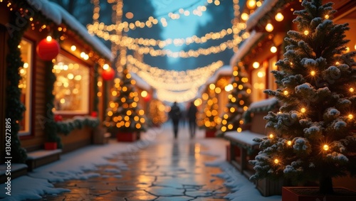 Festive holiday scene featuring decorative elements on a softly blurred backdrop with space for text.