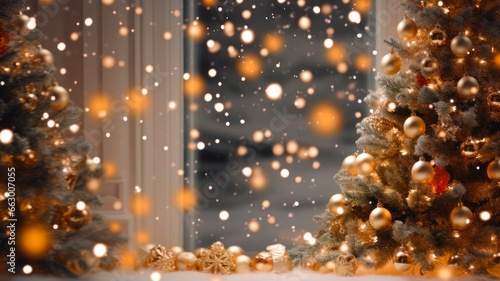 Festive Holly Border with Snowflakes and Traditional Christmas Tree for Religious Christmas Celebration