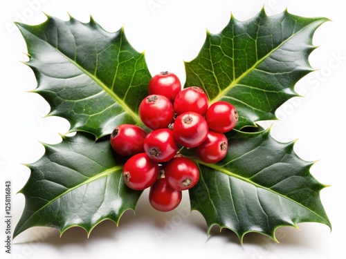 Festive Holly Branch with Red Berries Isolated on White - Perfect for Christmas Cards and Winter Designs