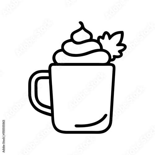 festive mug with whipped cream Outline Icon, christmas icon - Black outline icon of festive mug with whipped cream symbolizing Christmas, holidays, and festive in simple design.