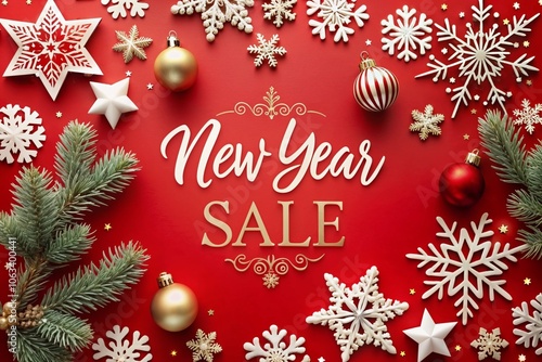 new year, sale, gift, red, green, festive, holiday, discount, celebration, present, shopping, deal, christmas, seasonal, offer, promotion, retail, online, e-business, winter, clearance, pine, branch, white, background, bright, cheerful, joyful, happy, exciting, attractive, eye-catching, stylish, modern, elegant, simple, clean, crisp, fresh, inviting, warm, cosy, welcoming, festivity