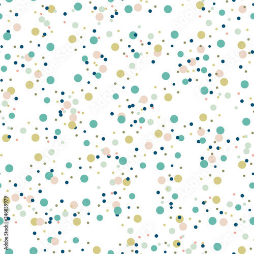 Festive pattern with colorful little circles. Chaotic polka dot background. Abstract round seamless pattern. Dotted texture. Vector illustration.