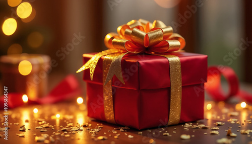 gift, box, red, gold, bow, celebration, holiday, decor, present, festive, wrapping, surprise, party, event, shiny, ribbon, cheer, joy, luxury, sparkle, seasonal, table, family, winter, treat, gathering, elegant, lighting, sweet, merry, christmas, birthday, celebrate, gift, style, happy, cheerful, atmosphere, colourful, shine, gold, new year, cherished