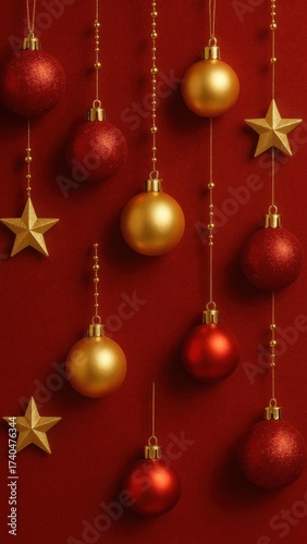 christmas decoration, christmas bauble, festive season, holiday spirit, red background, decoration, background, christmas, wallpaper, ornament, elegant, festive, hanging, holiday, design, gold, mobile, season, spirit, ball, photo, theme, gold, star, red