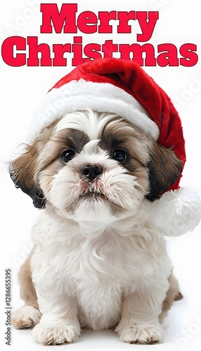 Festive Shih Tzu Puppy in Santa Hat Merry Christmas Card Design