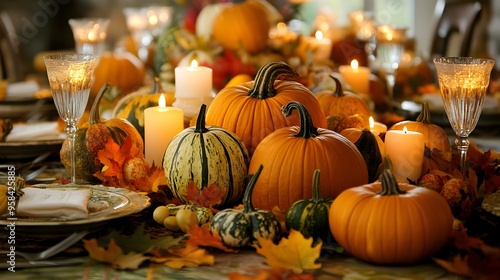 Festive Thanksgiving Table Decor with Pumpkins Gourds and Fall Foliage