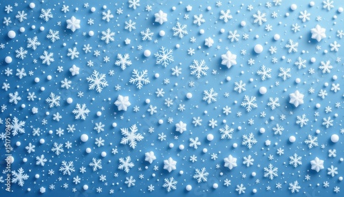 Festive Winter Background with White Snowflakes and Pearls on Blue Perfect for Holiday Cards and Winter Celebrations